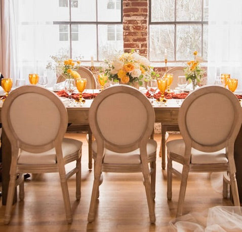 - 20x of your choice of chair (Natural Bentwood, Ebony Bentwood, Round Rattan Chair, or King Louis Chair)